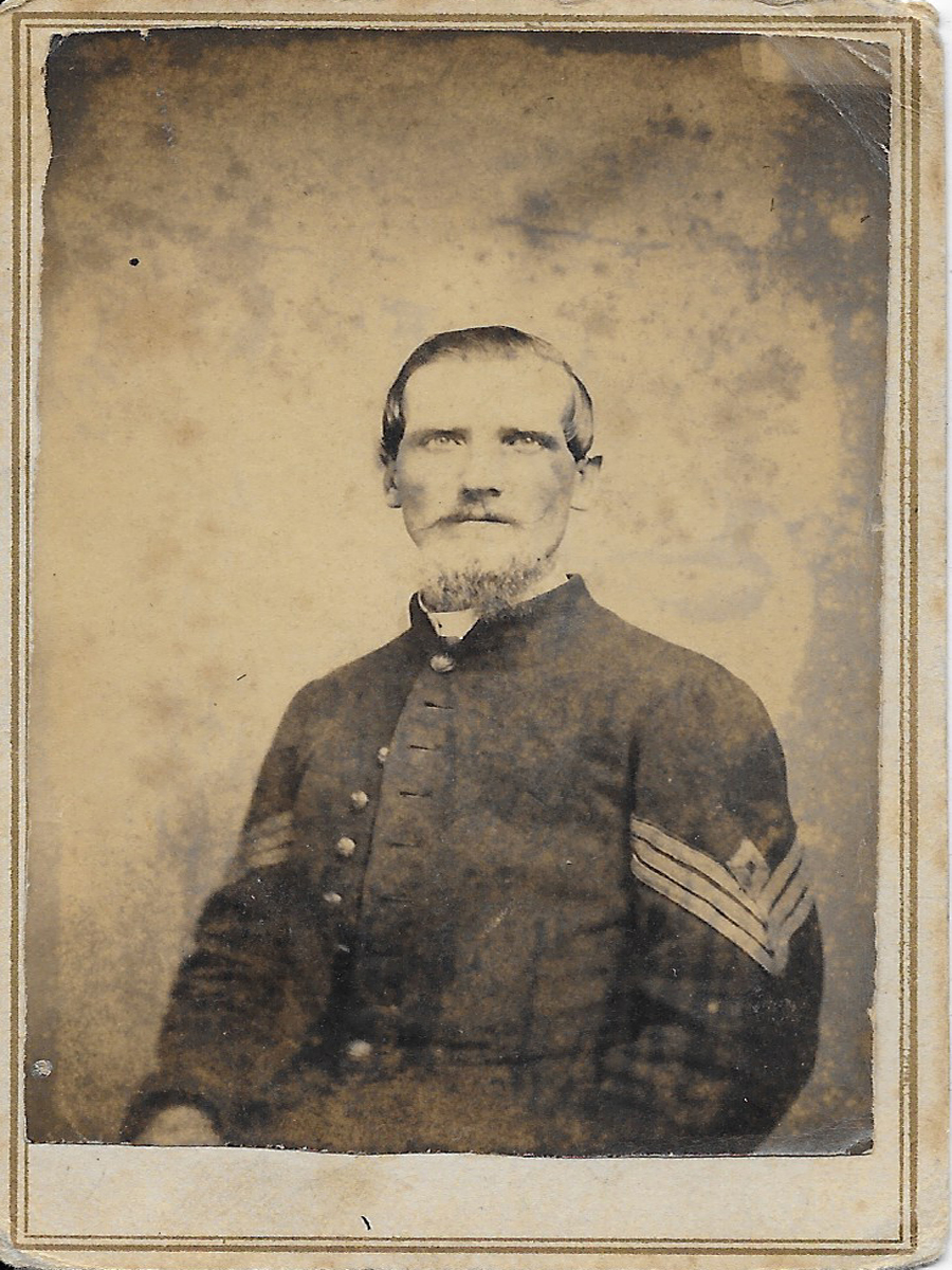 The Internal Revenue stamp on the back indicates that this photo was taken on 7/3/1865 in Louisville, KY. This 1st Sergeant has certainly seen plenty of action and