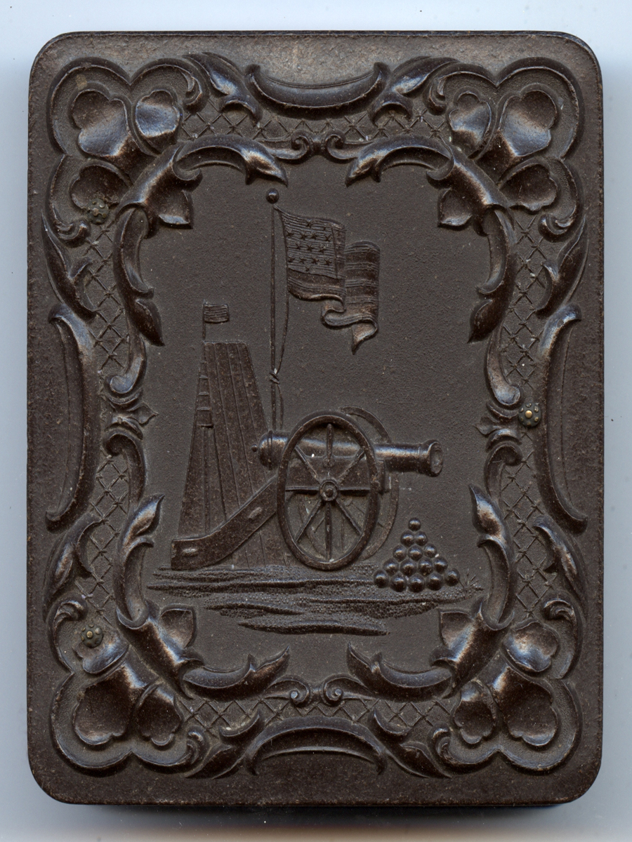 "Canon, Flag & Tent" 1/9 plate with no image or hardware. Hinges tight, clasp intact and one small corner chip. #5373=$185.00