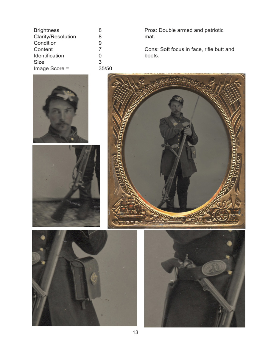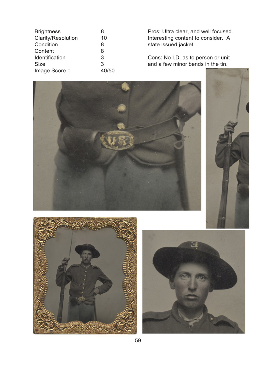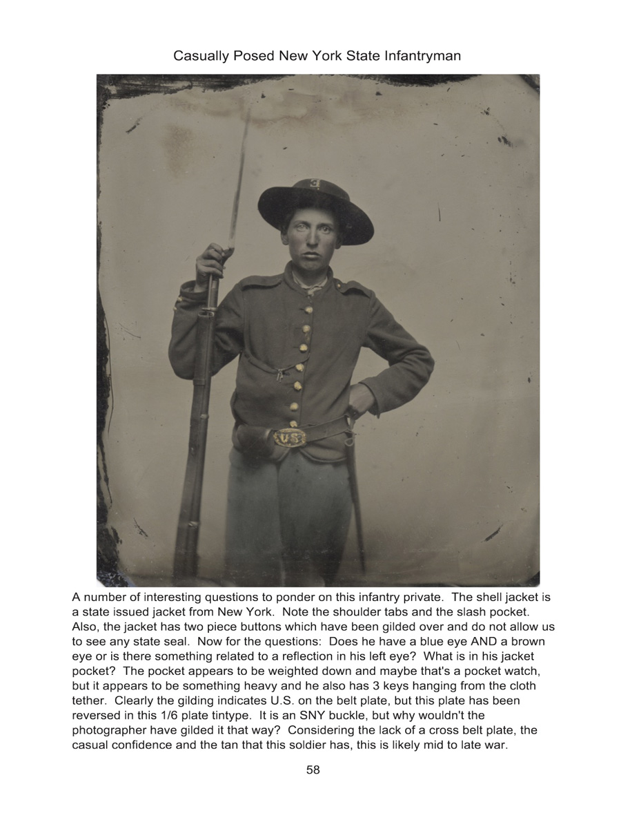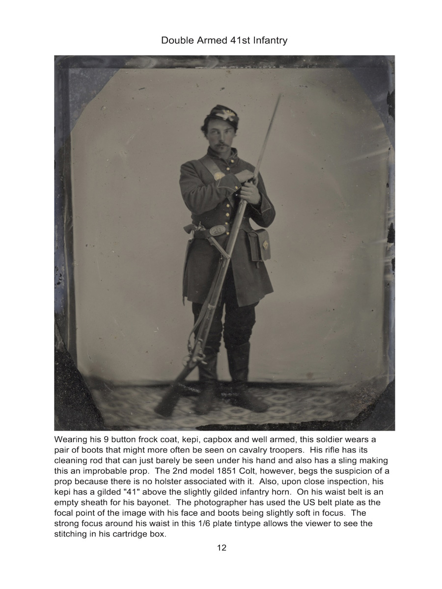 Over 200 pages of full color photographs featuring original Tintype and Ambrotype photographs of Union soldiers in this hard back book with a dust cover. Each, of over 100 featured soldiers, offers detailed blow ups ofweapons, buttons, uniforms, backdrops and more. Additionally, a commentary is provided for each soldier explaining particular items of interest associated with each featured soldier. $74.00